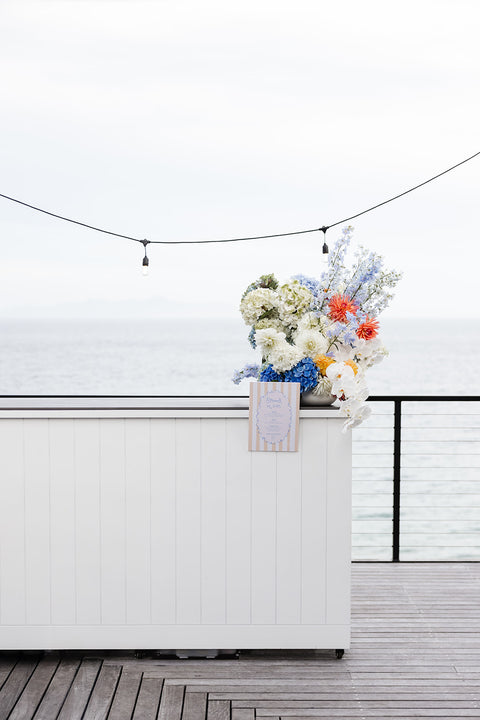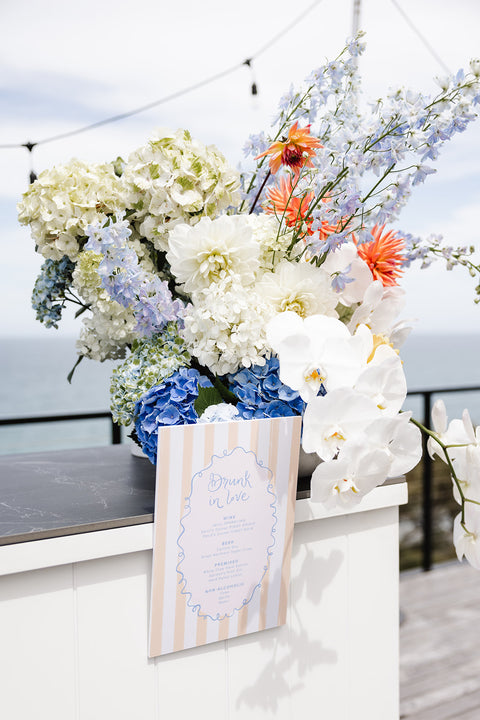 From the moment guests arrived, it was clear this wedding was a true reflection of Rachelle and Scott’s vibrant personalities. The welcome sign, reading 'Rachelle's wedding ft. Scott' is too funny! The soft pastel peach and pastel blue tones set the stage for a fresh and fun aesthetic, perfectly complimenting the natural beauty of the location.