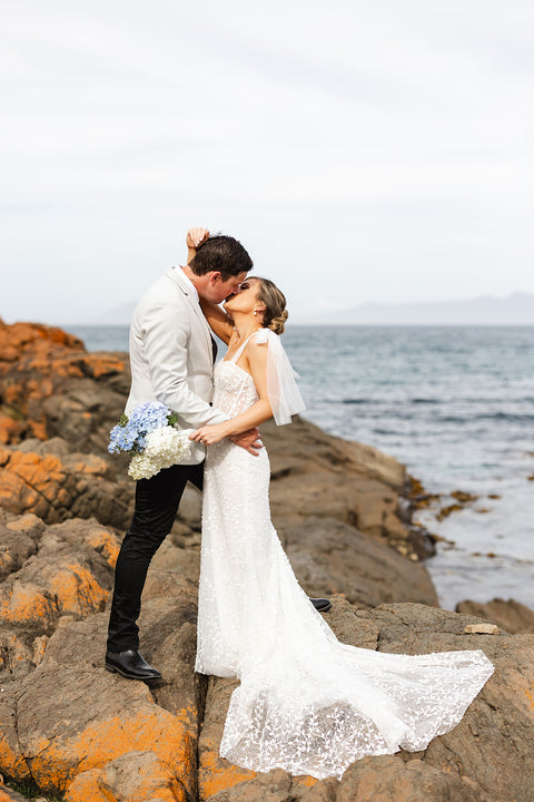 When it comes to dream weddings, Rachelle and Scott's special day on Tasmania’s spectacular East Coast was nothing short of breathtaking. With Swansea’s stunning coastline as the backdrop, this couple crafted a celebration that effortlessly blended luxury with playful charm.